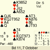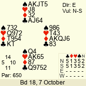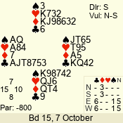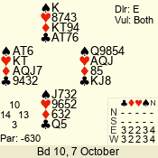 | Con | Dc | Res | Score | Ld | Pairs | Rd | Tbl | | 3 N | N | +1 | 630 | 3 | 04 - 06 | 8 | 4 |