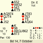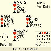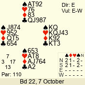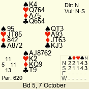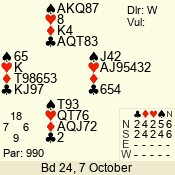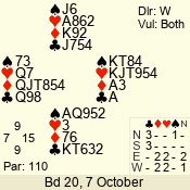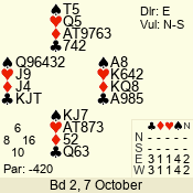 | Con | Dc | Res | Score | Ld | Pairs | Rd | Tbl | | 3 N | E | -3 | 150 | 2 | 08 - 04 | 5 | 8 |