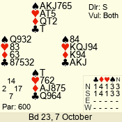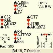 | Con | Dc | Res | Score | Ld | Pairs | Rd | Tbl | | 1 N x | W | -2 | 500 | 4 | 04 - 05 | 9 | 4 |