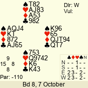 | Con | Dc | Res | Score | Ld | Pairs | Rd | Tbl | | 3 N | W | -2 | 200 | K | 08 - 04 | 5 | 8 |