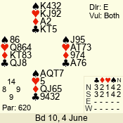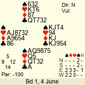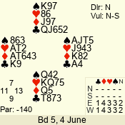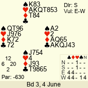 | Con | Dc | Res | Score | Ld | Pairs | Rd | Tbl | | 3 N | S | +2 | 660 | 4 | 03 - 05 | 7 | 3 |