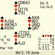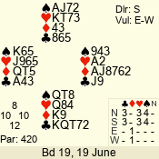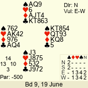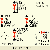 | 3 NT | S | +2 | 660 | 8 | 07 - 11 | 9 | 7 |