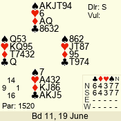 | 3 NT | S | +1 | 430 | 3 | 11 - 09 | 3 | 11 |