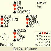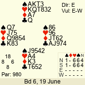 | 3 NT | S | +2 | 660 | 8 | 07 - 11 | 9 | 7 |