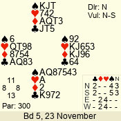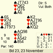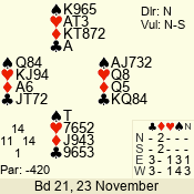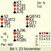 | Con | Dc | Res | Score | Ld | Pairs | Rd | Tbl | | 3 N | S | +2 | 460 | 2 | 04 - 05 | 9 | 4 |
