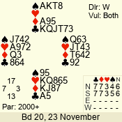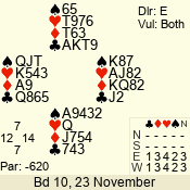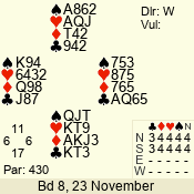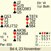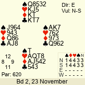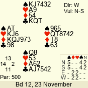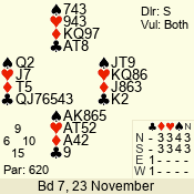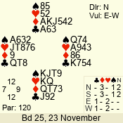 | Con | Dc | Res | Score | Ld | Pairs | Rd | Tbl | | 3 N | S | +4 | 720 | 2 | 09 - 02 | 8 | 9 |