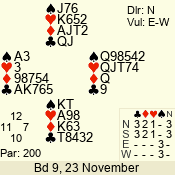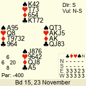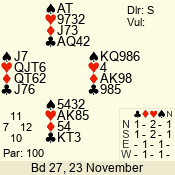 | Con | Dc | Res | Score | Ld | Pairs | Rd | Tbl | | 3 N | S | = | 400 | 7 | 09 - 09 | 1 | 9 |