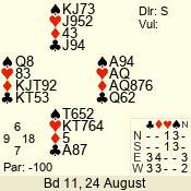 Con | Dc | Res | Score | Ld | Pairs | Rd | Tbl | 4  | N | +2 | 480 | J | 04 - 11 | 10 | 4 |