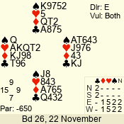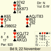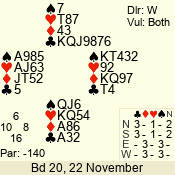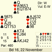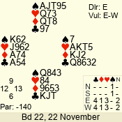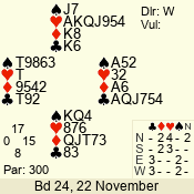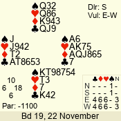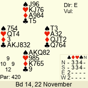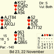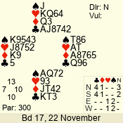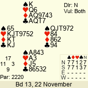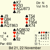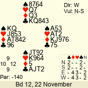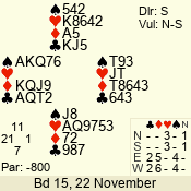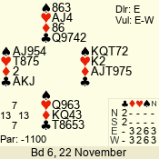 | 3 NT | W | +1 | -630 | 2 | 03 - 04 | 13 | 3 |