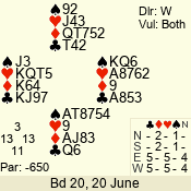 | Con | Dc | Res | Score | Ld | Pairs | Rd | Tbl | | 3 N | N | +1 | 630 | 8 | 04 - 04 | 11 | 4 |