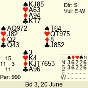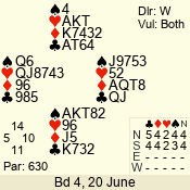 | Con | Dc | Res | Score | Ld | Pairs | Rd | Tbl | | 3 N | N | +1 | 630 | 8 | 04 - 04 | 11 | 4 |