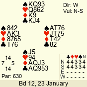 | Con | Dc | Res | Score | Ld | Pairs | Rd | Tbl | | 3 N | S | +1 | 430 | 4 | 06 - 09 | 7 | 6 |