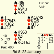 | Con | Dc | Res | Score | Ld | Pairs | Rd | Tbl | | 3 N | W | -5 | 250 | 5 | 08 - 07 | 2 | 8 |