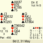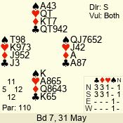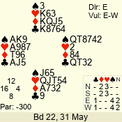 | 3 NT | S | +1 | 430 | 9 | 11 - 07 | 9 | 5 |