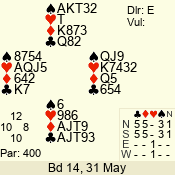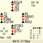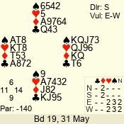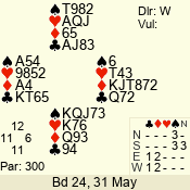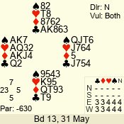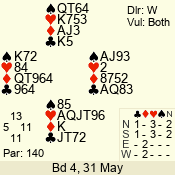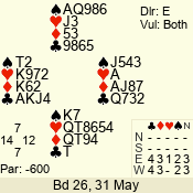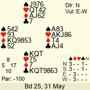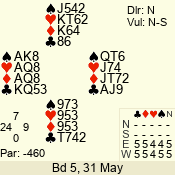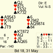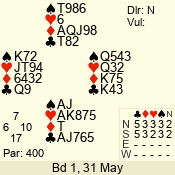 | 3 NT | S | +1 | 430 | 5 | 13 - 03 | 4 | 3 |