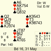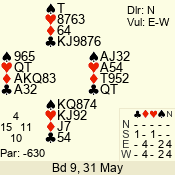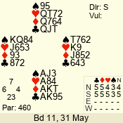 | 3 NT | S | +1 | 430 | 9 | 11 - 07 | 9 | 5 |