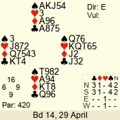 | Con | Dc | Res | Score | Ld | Pairs | Rd | Tbl | 4  | W | = | -420 | 7 | 06 - 04 | 3 | 6 |