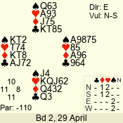 | Con | Dc | Res | Score | Ld | Pairs | Rd | Tbl | | 3 N | W | -3 | 300 | 5 | 04 - 06 | 7 | 4 |