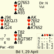 | Con | Dc | Res | Score | Ld | Pairs | Rd | Tbl | 4  | S | +1 | 450 | A | 08 - 03 | 6 | 8 |