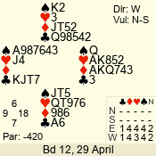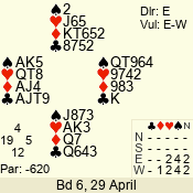 | Con | Dc | Res | Score | Ld | Pairs | Rd | Tbl | 4  | W | = | -420 | 7 | 06 - 04 | 3 | 6 |