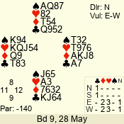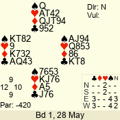| 3 NT | W | +3 | -690 | K | 07 - 12 | 9 | 7 |