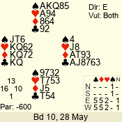 | 3 NT | S | -1 | -100 | A | 13 - 13 | 1 | 13 |