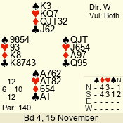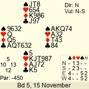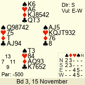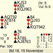 | 3 NT | W | +1 | -430 | 6 | 13 - 02 | 10 | 2 |
