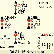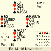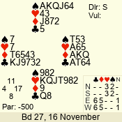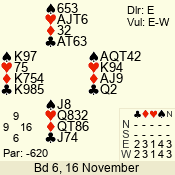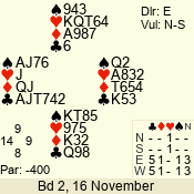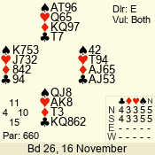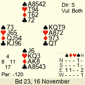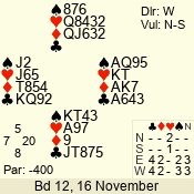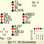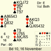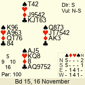 | 3 NT | S | +1 | 630 | 2 | 04 - 03 | 6 | 2 |