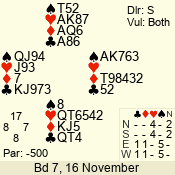 | 3 NT | S | +1 | 630 | 2 | 08 - 07 | 7 | 1 |