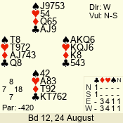 | Con | Dc | Res | Score | Ld | Pairs | Rd | Tbl | 3  | W | -4 | 200 | K | 01 - 09 | 3 | 1 |