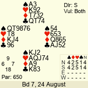 | Con | Dc | Res | Score | Ld | Pairs | Rd | Tbl | 4  | N | +1 | 650 | Q | 06 - 03 | 4 | 6 |