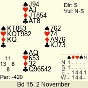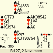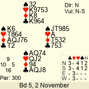 | 3 NT | W | +3 | -690 | J | 04 - 03 | 6 | 2 |
