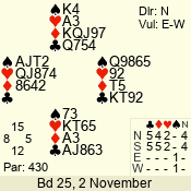 | 3 NT | S | +1 | 430 | 4 | 01 - 06 | 5 | 3 |