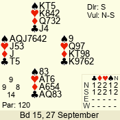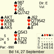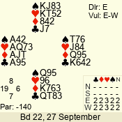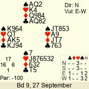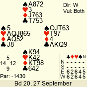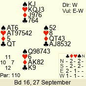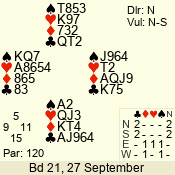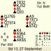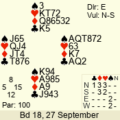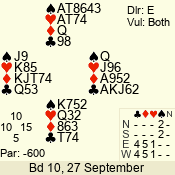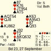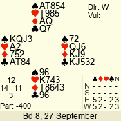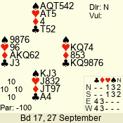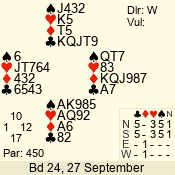 | 3 NT | W | +1 | -430 | 4 | 08 - 04 | 5 | 8 |