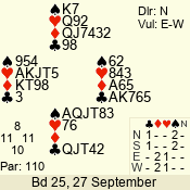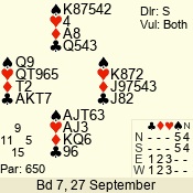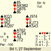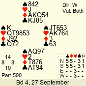 | 3 NT | W | +1 | -430 | 4 | 08 - 04 | 5 | 8 |