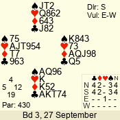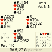 | 3 NT | W | +1 | -430 | 5 | 01 - 08 | 3 | 1 |