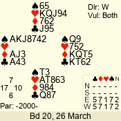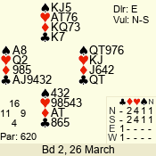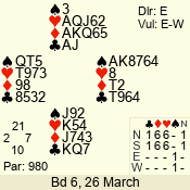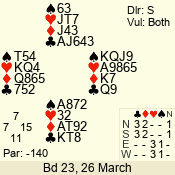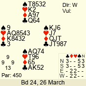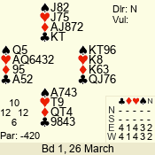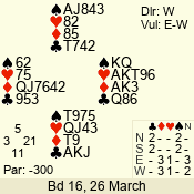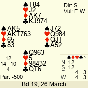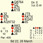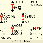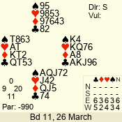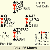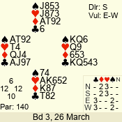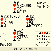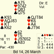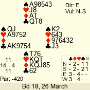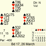 | Con | Dc | Res | Score | Ld | Pairs | Rd | Tbl | | 3 N | E | -4 | 400 | A | 12 - 03 | 10 | 12 |