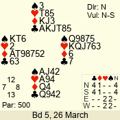 | Con | Dc | Res | Score | Ld | Pairs | Rd | Tbl | 5 x | E | -4 | 800 | 2 | 05 - 05 | 1 | 5 |