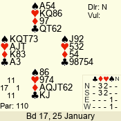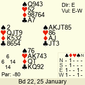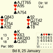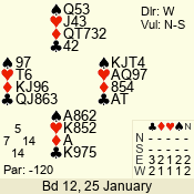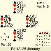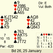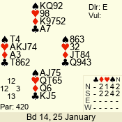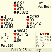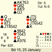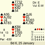 | 3 NT | E | +1 | -630 | 5 | 08 - 12 | 1 | 2 |
