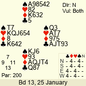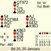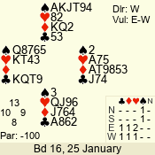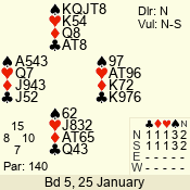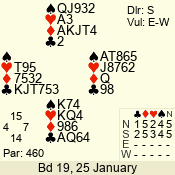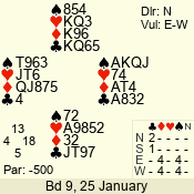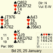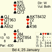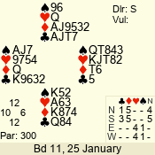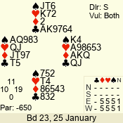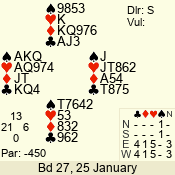 | 3 NT | S | +1 | 430 | 5 | 10 - 01 | 1 | 1 |
