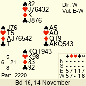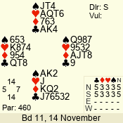 | Con | Dc | Res | Score | Ld | Pairs | Rd | Tbl | | 3 N | S | +2 | 460 | 9 | 05 - 02 | 4 | 5 |