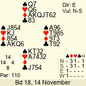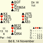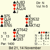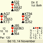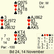 | Con | Dc | Res | Score | Ld | Pairs | Rd | Tbl | | 6 N | N | +1 | 1470 | 8 | 01 - 01 | 1 | 1 |
