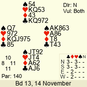 | Con | Dc | Res | Score | Ld | Pairs | Rd | Tbl | | 3 N | N | = | 600 | J | 03 - 05 | 4 | 3 |