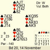 | Con | Dc | Res | Score | Ld | Pairs | Rd | Tbl | | 3 N | S | +2 | 460 | 9 | 05 - 02 | 4 | 5 |