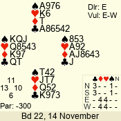 | Con | Dc | Res | Score | Ld | Pairs | Rd | Tbl | | 3 N | E | -6 | 300 | 2 | 02 - 03 | 5 | 2 |