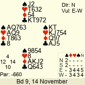| Con | Dc | Res | Score | Ld | Pairs | Rd | Tbl | | 3 N | N | = | 600 | 9 | 03 - 02 | 2 | 3 |