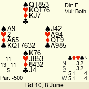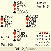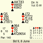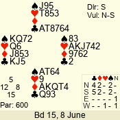 | Con | Dc | Res | Score | Ld | Pairs | Rd | Tbl | | 3 N | S | +3 | 490 | 8 | 02 - 04 | 11 | 2 |