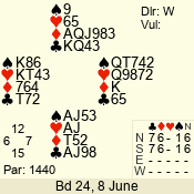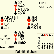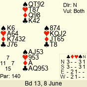 | Con | Dc | Res | Score | Ld | Pairs | Rd | Tbl | | 3 N | S | +3 | 490 | 8 | 02 - 04 | 11 | 2 |