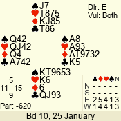 | Con | Dc | Res | Score | Ld | Pairs | Rd | Tbl | | 3 N | N | +1 | 630 | 4 | 08 - 04 | 5 | 8 |