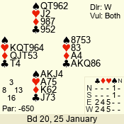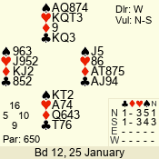| Con | Dc | Res | Score | Ld | Pairs | Rd | Tbl | 4  | N | +1 | 650 | Q | 01 - 02 | 11 | 1 |